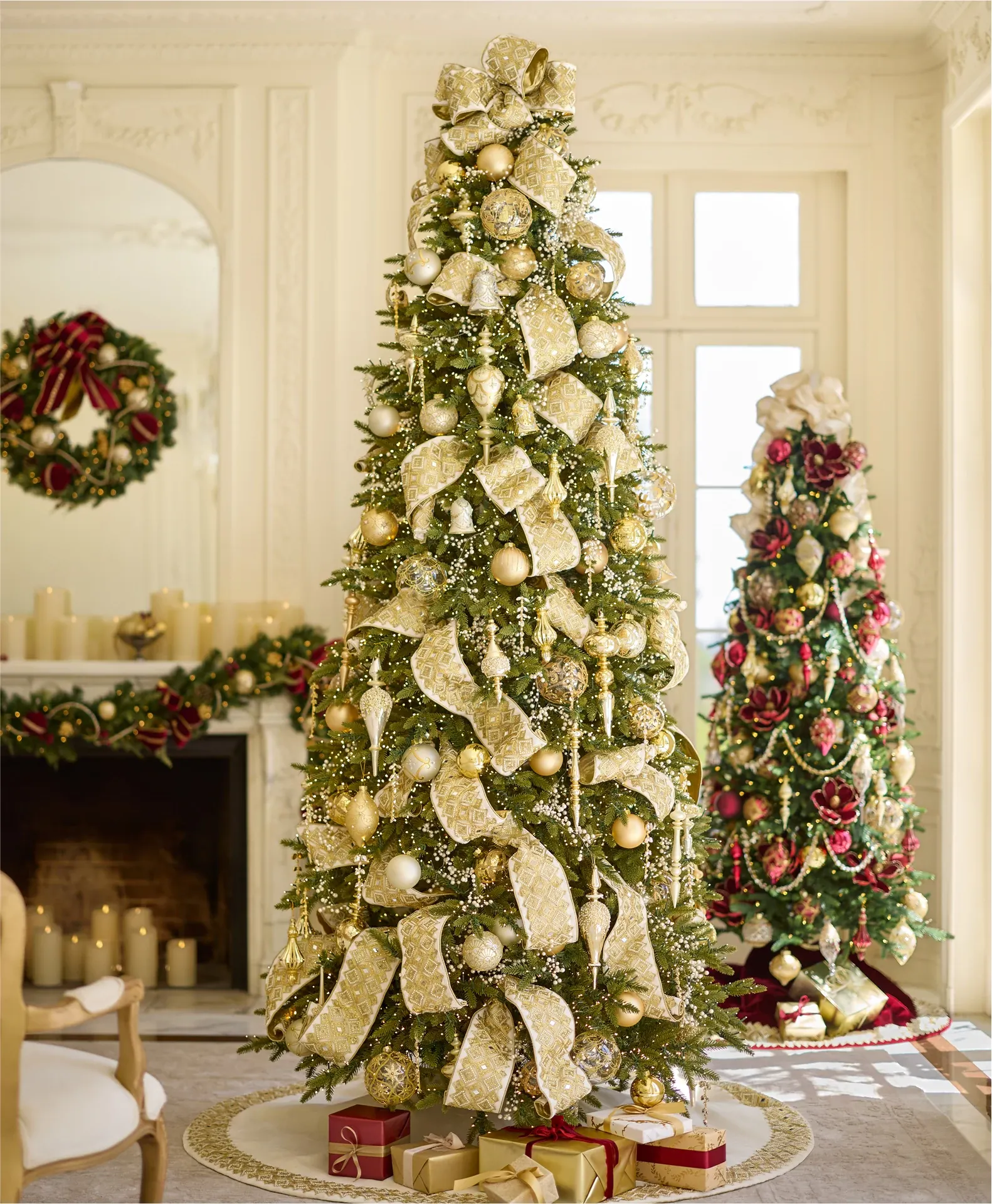 Like the regal Christmas décor displayed in stately manors of a bygone era, our new heirloom-quality Gilded Glory collection brings a touch of elegance to your holiday look with intricately designed accents of gold and burgundy.