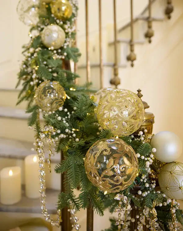 Dangle stockings from your garland-lined banister for a picture-perfect holiday focal point. It's an easy way to add joyful layers joy to a high-traffic spot.